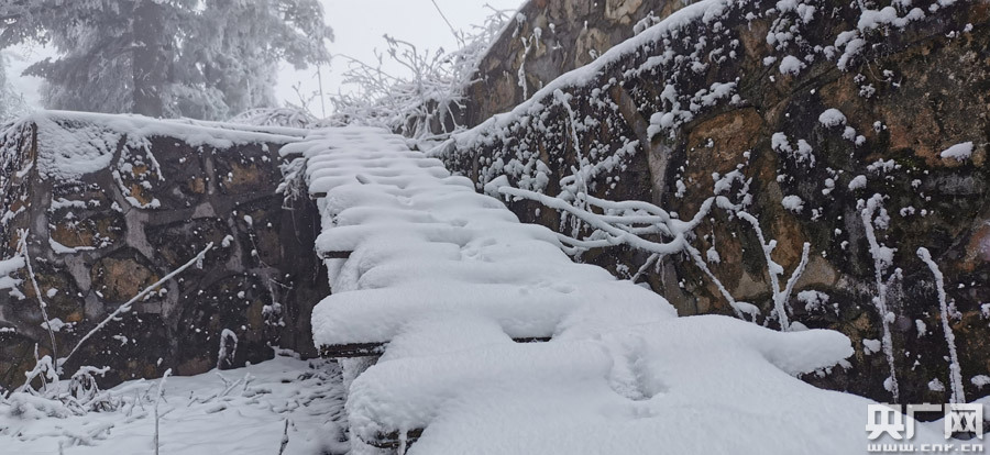 被白雪覆蓋的黃洋界顯得格外潔凈和美麗,奇松怪石山峰在皚皚白雪妝扮下,分外妖嬈,銀裝素裹的美麗雪景給這個春天帶來一份驚喜。