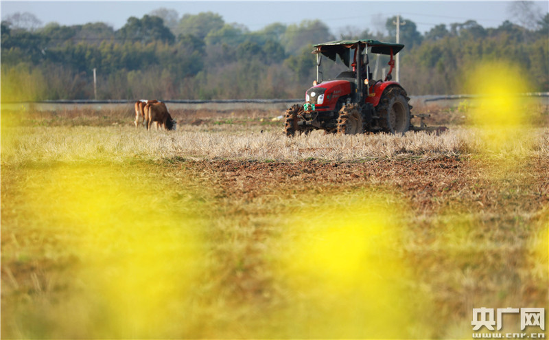 2020年2月26日,江西省吉安市泰和縣沿溪鎮(zhèn)倉嶺村農(nóng)民駕駛拖拉機翻耕土地。
