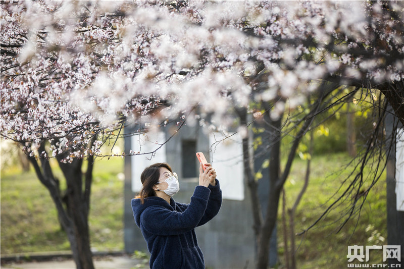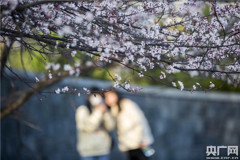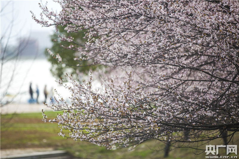 3月1日,在江西省九江市都昌縣東湖畔,游人在賞櫻花。央廣網(wǎng)發(fā) 傅建斌攝