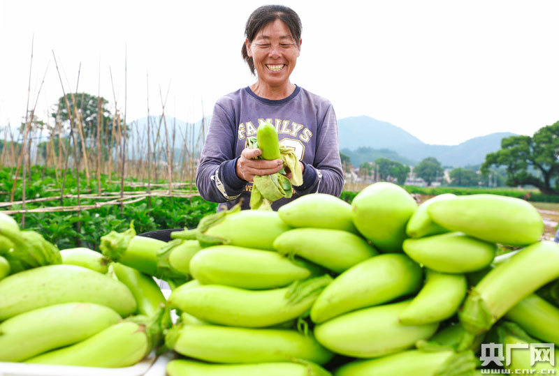 農(nóng)民搬運(yùn)采收的茄子