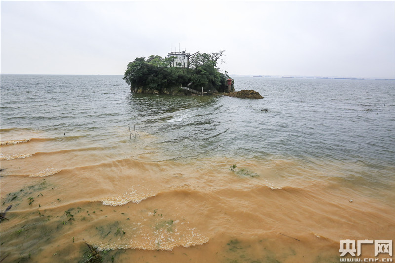 7月5日拍攝的洪水中的江西鄱陽湖都昌印山。(央廣網發(fā) 通訊員傅建斌 攝)