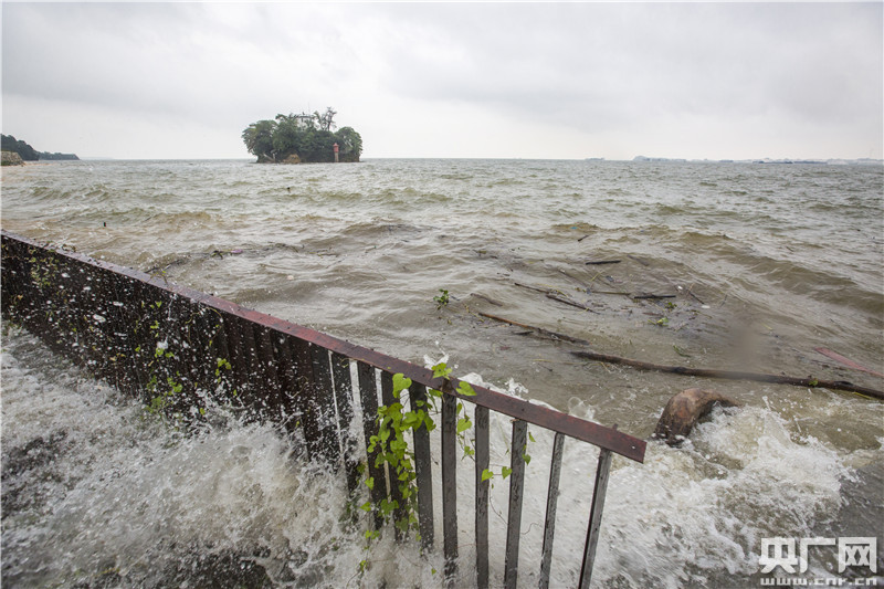 7月5日,江西鄱陽湖都昌印山附近的親水平臺被洪水沖刷。(央廣網發(fā) 通訊員傅建斌 攝)