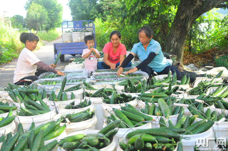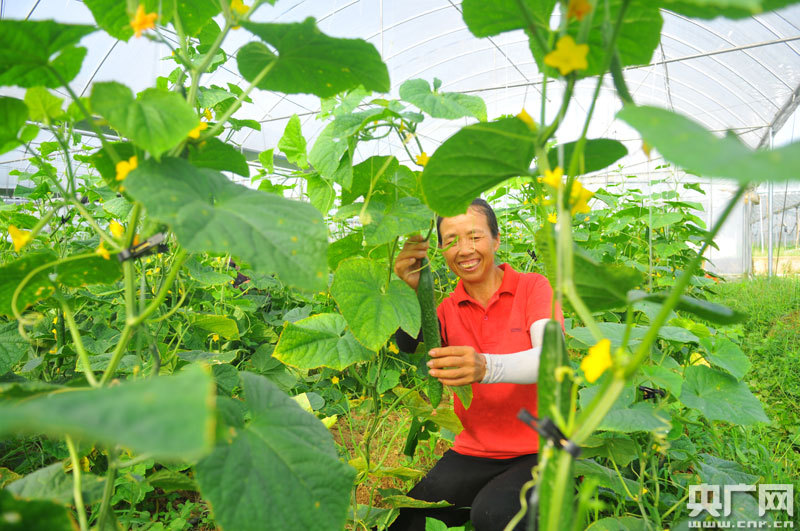 貧困戶在周布村采摘青瓜(央廣網(wǎng)發(fā) 通訊員陳聲年 攝)
