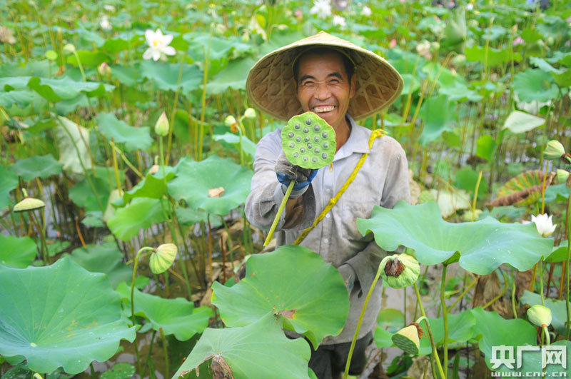 貧困戶在采蓮(央廣網(wǎng)發(fā) 通訊員陳聲年 攝)