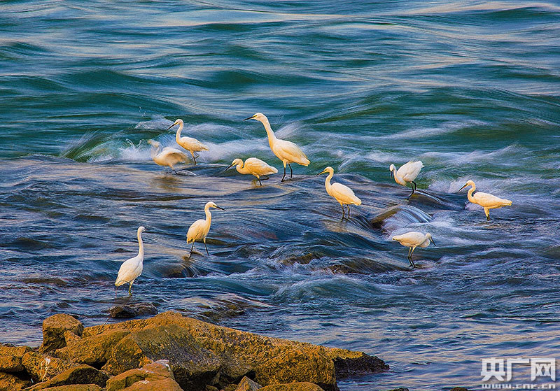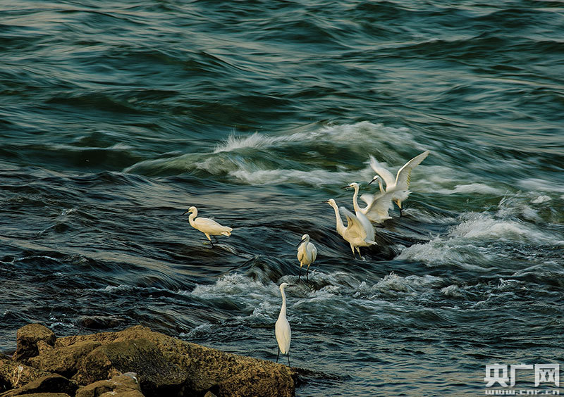 這自然生態(tài)優(yōu)美的恩澤,吸引了大批白鷺戲水、佇立灘頭、伺機(jī)而動的捕魚鏡頭入簾。