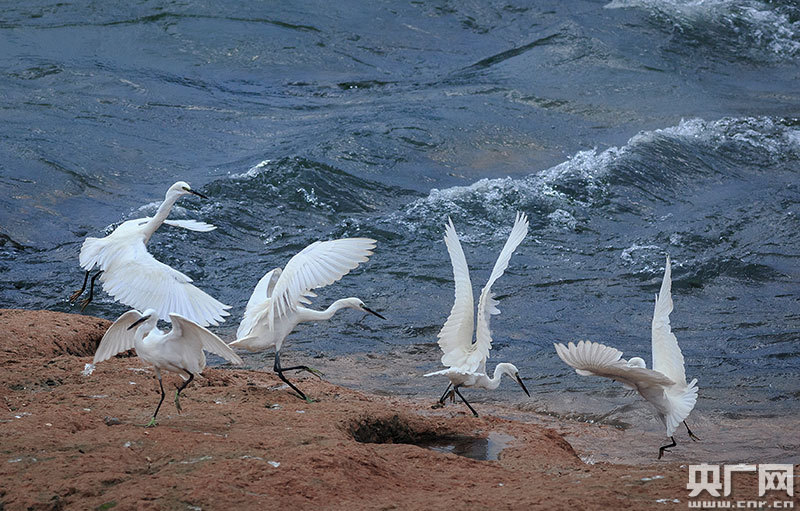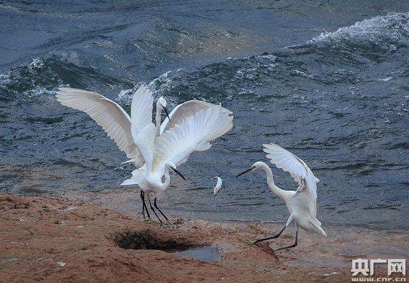 灘頭戲水白鷺(央廣網(wǎng)發(fā) 通訊員廖紹昆 攝)