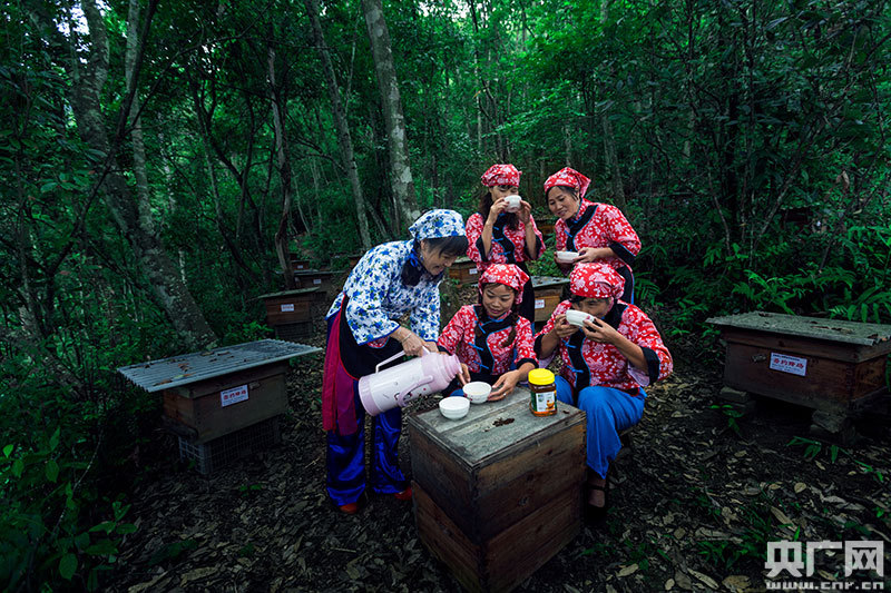 蜂農(nóng)在品嘗蜂蜜(央廣網(wǎng)發(fā) 通訊員供圖)