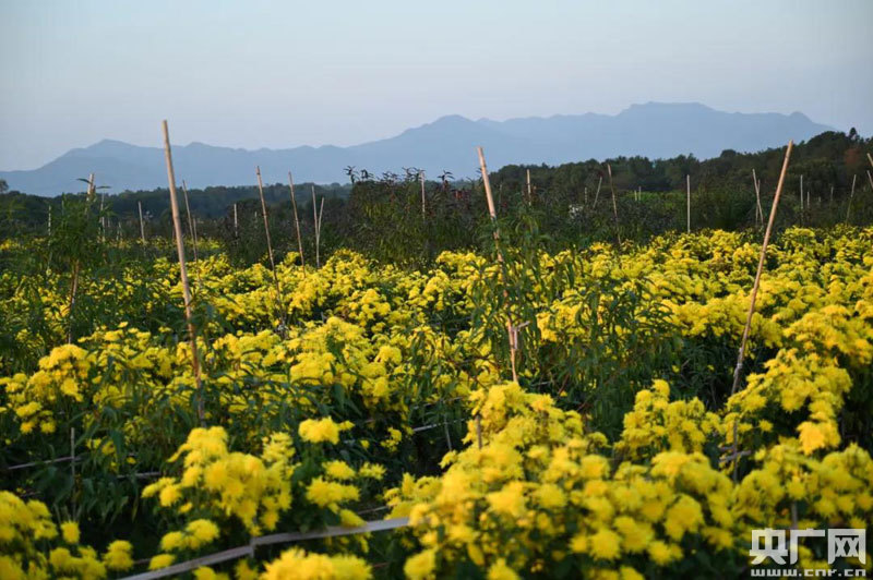 該基地種植著金絲菊、皇菊、貢菊、七月菊、杭白菊等多個品種的菊花。