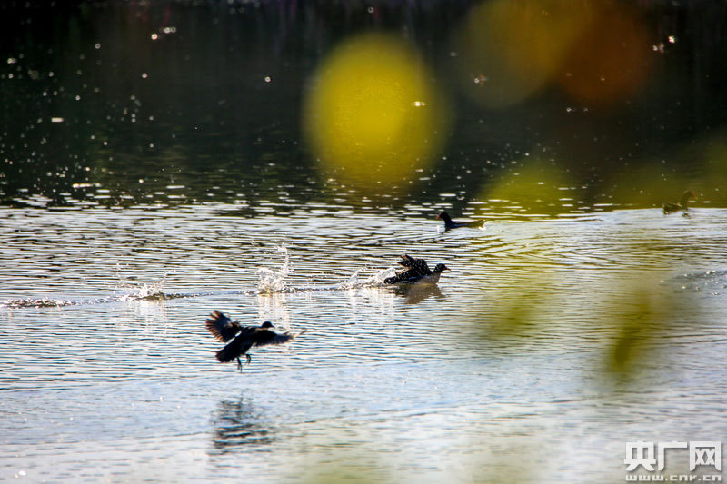 近百只野生水鳥,在這里覓食、嬉戲(央廣網(wǎng)發(fā) 通訊員攝)