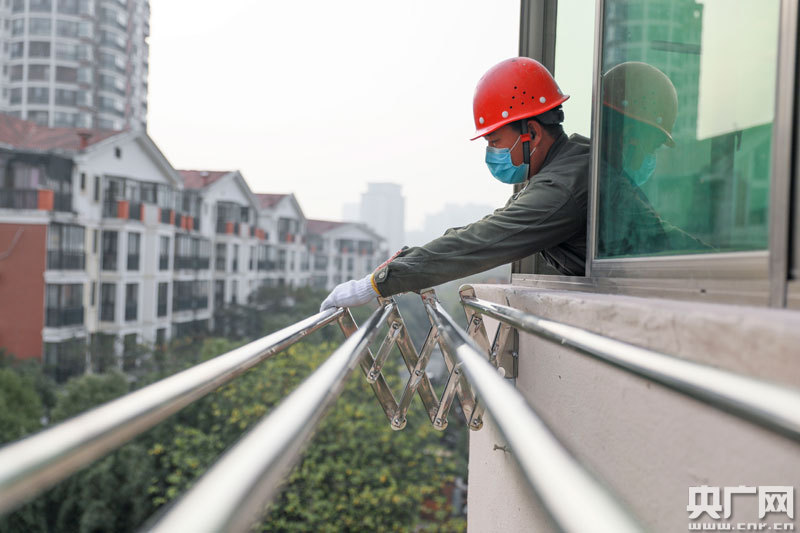 在該區(qū)古南鎮(zhèn)街道桃樹(shù)下社區(qū)如意苑小區(qū),工人正在為居民改裝伸縮晾衣架(央廣網(wǎng)發(fā) 通訊員楊璐 攝)