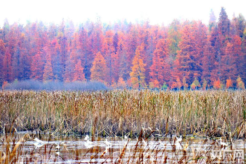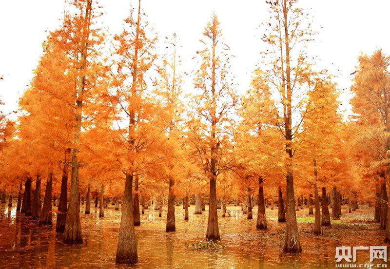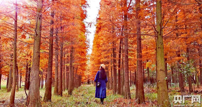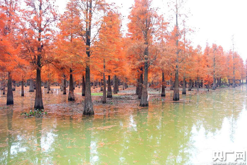 央廣網(wǎng)貴溪12月14日消息(記者鄧玉玲 通訊員胡菊妹 易。┤攵詠(lái),江西貴溪市塔橋白鶴湖附近,萬(wàn)棵水杉樹,匯織成一幅流光溢彩的“油畫”,熱烈的金黃,濃郁的暗紅,正處于最佳觀賞期,吸引眾多游客前去觀賞。