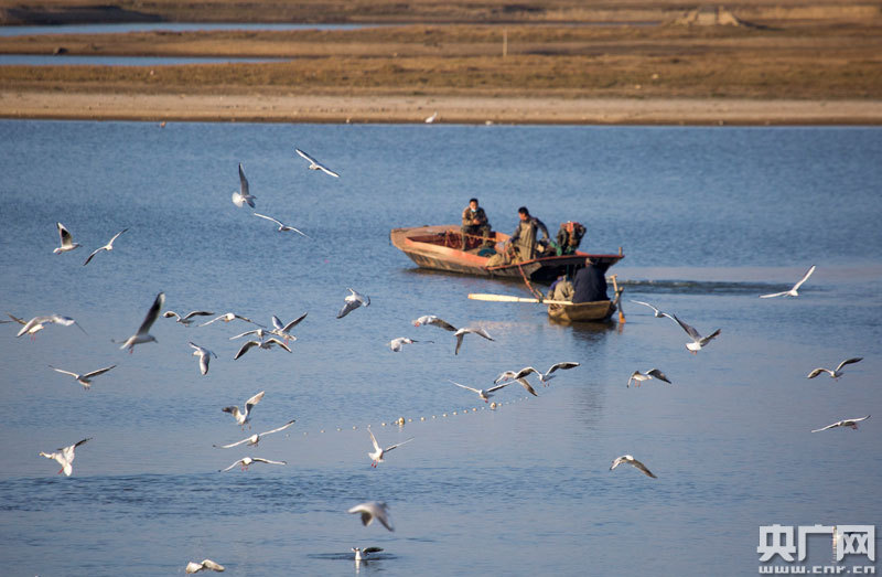 1月19日,江西省九江市都昌縣大沔池湖面上飛翔的鷗鳥(央廣網(wǎng)發(fā) 通訊員傅建斌 攝)