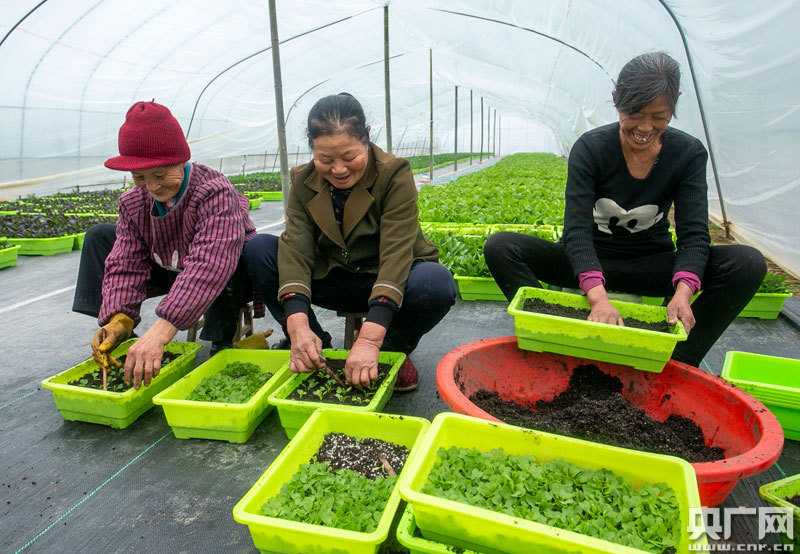 村民正在移栽盆栽蔬菜(央廣網(wǎng)發(fā) 通訊員供圖)