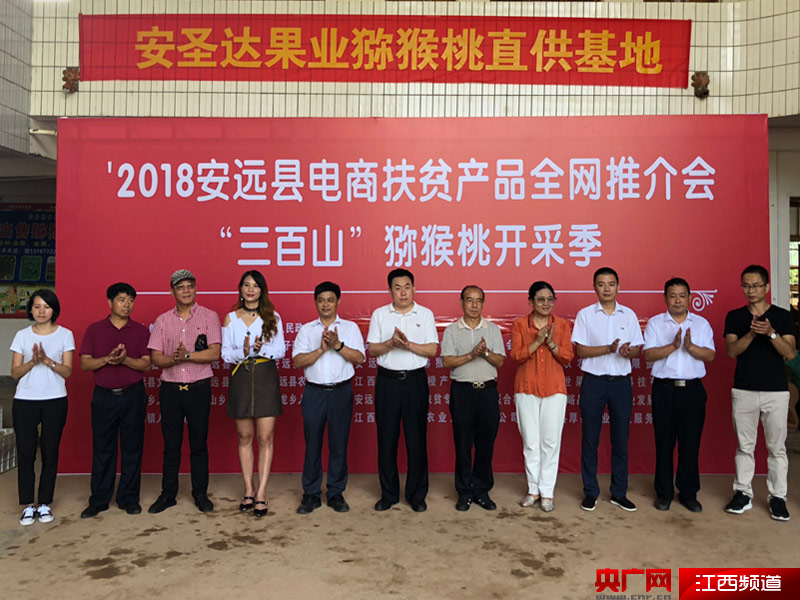 央廣網(wǎng)安遠(yuǎn)8月14日消息(胡斐)8月13日,以“電商扶貧 產(chǎn)業(yè)興旺 鄉(xiāng)村振興”為主題,2018安遠(yuǎn)縣電商扶貧產(chǎn)品全網(wǎng)推介會(huì)舉行。中國果品流通協(xié)會(huì)、江西省農(nóng)產(chǎn)品市場流通協(xié)會(huì)、贛州市果業(yè)局負(fù)責(zé)人及電商企業(yè)代表等170余人出席參會(huì)。
