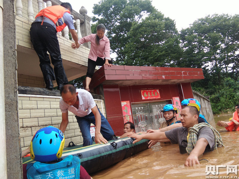 6月10日,全南縣公安民警、村干部、藍(lán)天救援隊(duì)和村民在大吉山鎮(zhèn)小溪村寺光背組救援被困群眾。