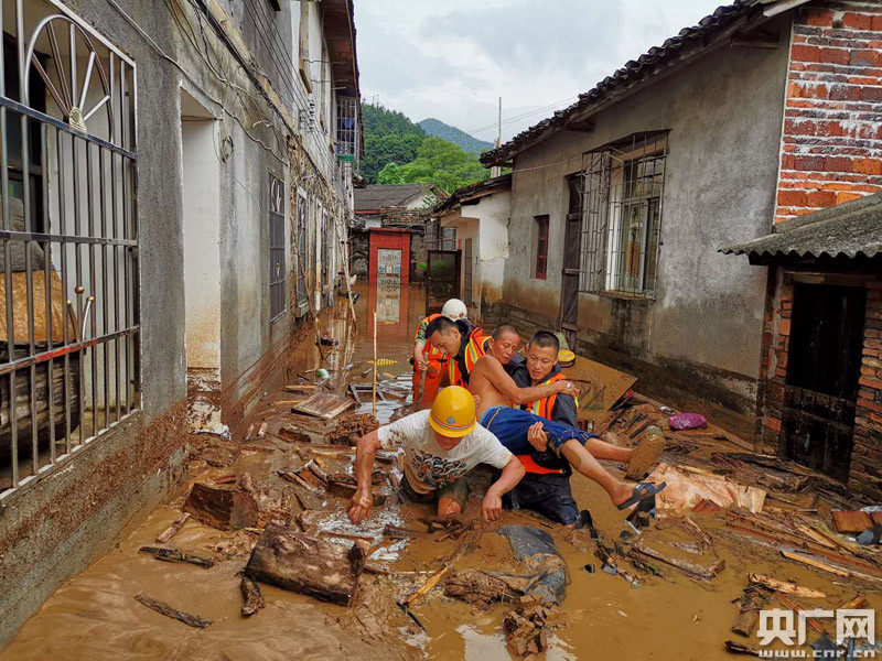 同樣感人的故事還發(fā)生在金龍鎮(zhèn)兆坑村。6月12日下午,為轉(zhuǎn)移村里51名受困群眾,金龍鎮(zhèn)黨政領(lǐng)導(dǎo)班子主動(dòng)帶頭,卷起褲腿光著腳,一遍遍淌過(guò)湍急的河水,將村里的老人孩子背過(guò)對(duì)岸。在黨員干部的帶領(lǐng)下,附近群眾也自發(fā)參與到抗洪搶險(xiǎn)中,大家不知疲倦往返幾十余次,最終將受困村民全部安全轉(zhuǎn)移,做到“不漏一戶(hù),不漏一人”。