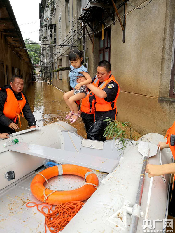 6月11日,全南公安民輔警在大吉山鎮(zhèn)解救被洪水圍困的受災(zāi)群眾