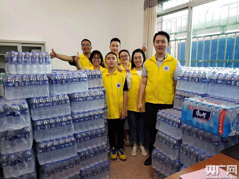 全南青年志愿者在運(yùn)送愛心企業(yè)捐贈(zèng)的飲用水物資