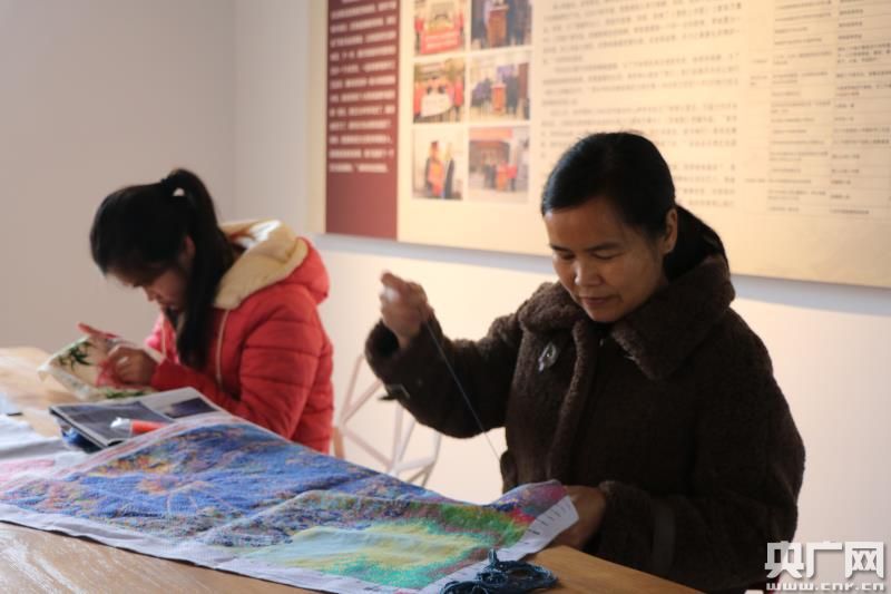 央廣網(wǎng)上栗4月8日消息(記者王一凡 通訊員梁紫微 李智航)在何利華的幫助下,我也學(xué)會了刺繡,她是我們看齊的榜樣,她憑借勤奮走出生活困境,讓我也看到了脫貧希望”。大院村的建檔立卡戶吳會萍說道。