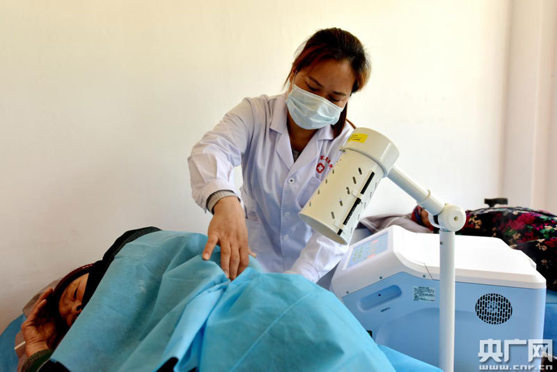 護(hù)理員在為老人進(jìn)行艾熏和按摩(黃揚(yáng)揚(yáng) 攝)