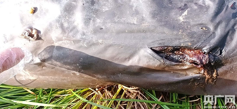 該江豚身上發(fā)現(xiàn)兩處傷痕(央廣網(wǎng)發(fā) 江豚保護(hù)志愿者 提供)