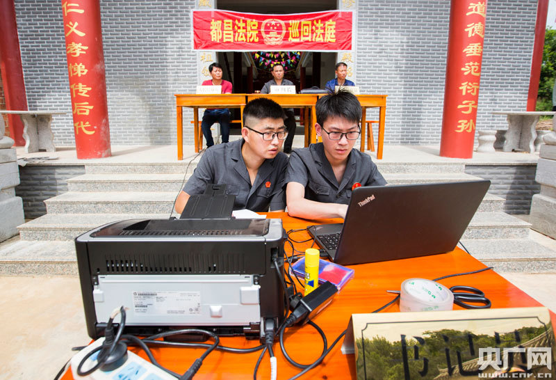 6月12日,在江西省九江市都昌縣蔡嶺鎮(zhèn)虎山村拍攝的巡回法庭庭審現(xiàn)場(央廣網(wǎng)發(fā) 通訊員傅建斌 攝)