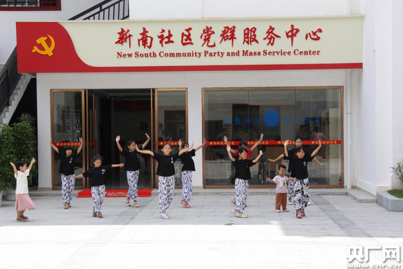 孩子們在南逕鎮(zhèn)新南社區(qū)表演舞蹈