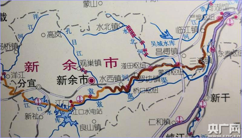 袁河新余段總體走向圖(央廣網(wǎng)發(fā) 通訊員提供)
