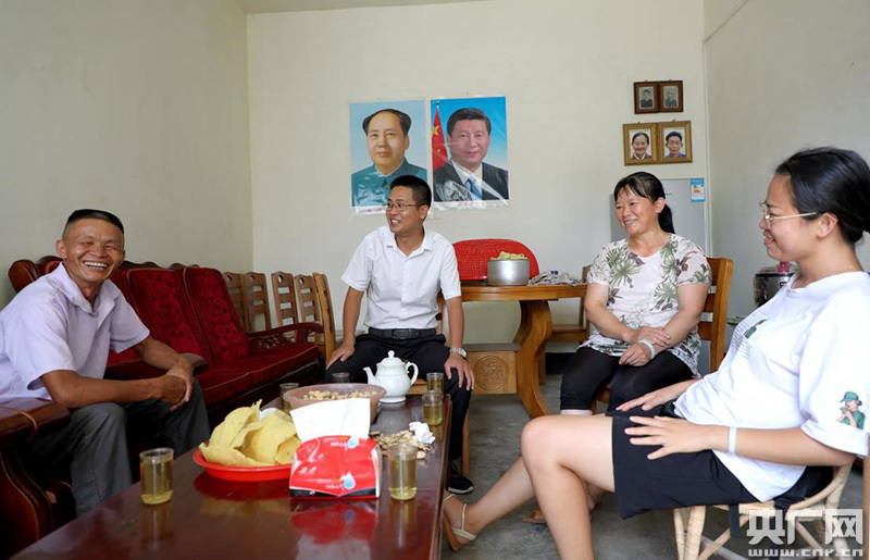 幫扶干部到郭福金(左一)家走訪(央廣網(wǎng)發(fā) 通訊員尹其奇 攝)