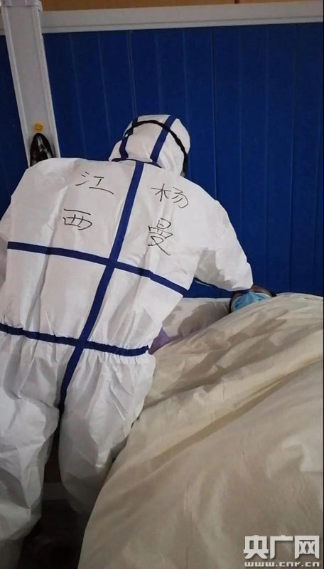 貴溪市人民醫(yī)院護(hù)士楊曼在武漢照顧患者(央廣網(wǎng)發(fā) 通訊員供圖)