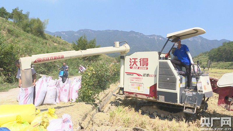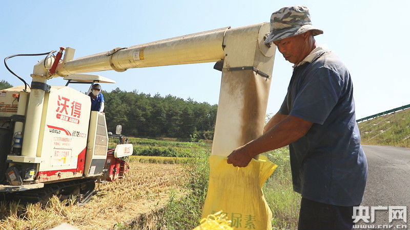 收割機在搶收水稻(央廣網發(fā) 通訊員供圖)