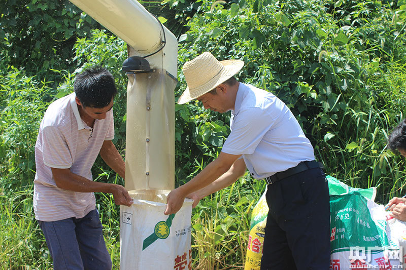 秋收時(shí)節(jié),李恩生幫助貧困戶收獲水稻