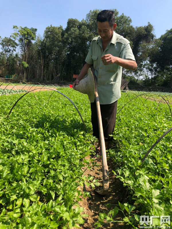 寒露過后,正是種芹菜、包菜、小白菜和扁蘿卜的時節(jié)。天不亮,63歲的郭承基就頭頂套著手電筒,進(jìn)自家地里忙活開了。他種的菜除了日常生活,多的就帶到圩鎮(zhèn)市場售賣。