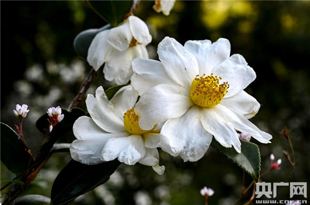 央廣網貴溪11月19日消息(記者胡斐 通訊員陸傳和 易。┥钋飼r節(jié),江西貴溪市三縣嶺林場楊前崗的萬畝油茶基地里的油茶樹上開滿了一朵朵白色的油茶花,萬畝油茶花盛開美如畫。