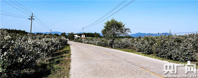公路從油茶樹林中穿過,汽車駛來,油茶花在道路的兩旁隨風搖曳,宛然夾道歡迎的人群在揮舞著潔白的“哈達”。