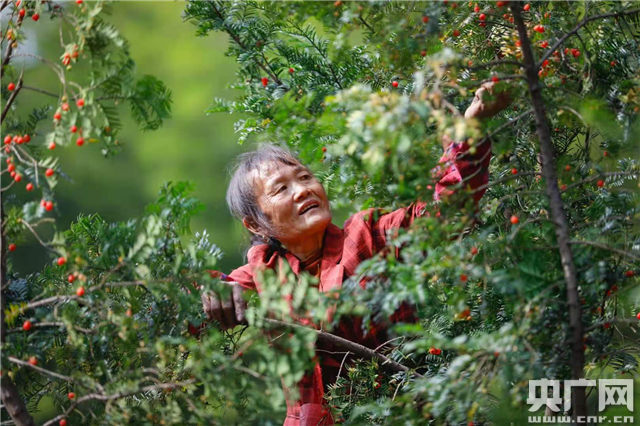 優(yōu)美的生態(tài)環(huán)境、紅豆杉果的采摘旺季,引得眾多游客慕名而來,赴一場“相思果”之約。
