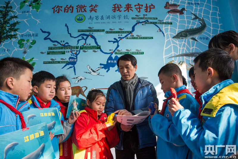 長江江豚是長江中特有的淡水鯨類動物,現(xiàn)有種群數(shù)量1000頭左右,其中鄱陽湖約450頭。為呼吁更多人參與江豚保護,在長江流域漁業(yè)資源管理委員會辦公室和武漢白鱀豚保護基金會支持下,長江日報影像自然工作室(簡稱影像自然),發(fā)起“拯救長江江豚行動”,在長江全流域征集“守護江豚示范學!薄D壳,全國共建成9所“守護江豚示范學!。