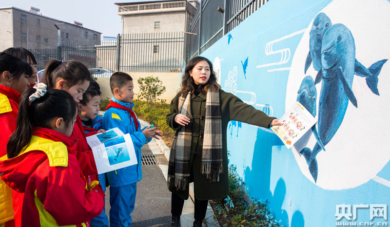 江豚保護志愿者為學生科普江豚知識(央廣網(wǎng)發(fā) 通訊員傅建斌 攝)
