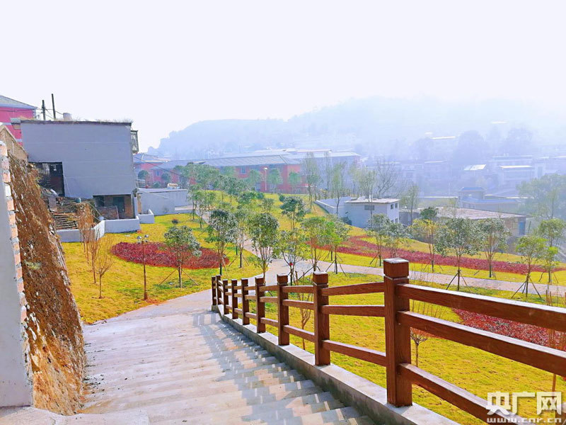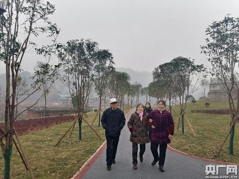 楊嘉峰與鄰居漫步在社區(qū)新廣場(chǎng)上(央廣網(wǎng)發(fā) 通訊員供圖)