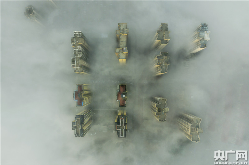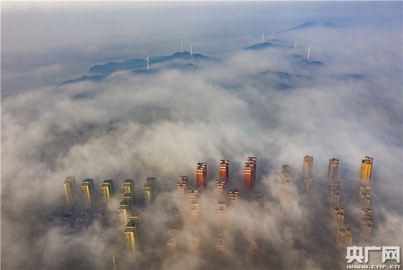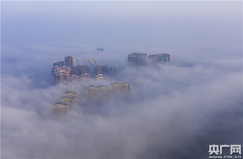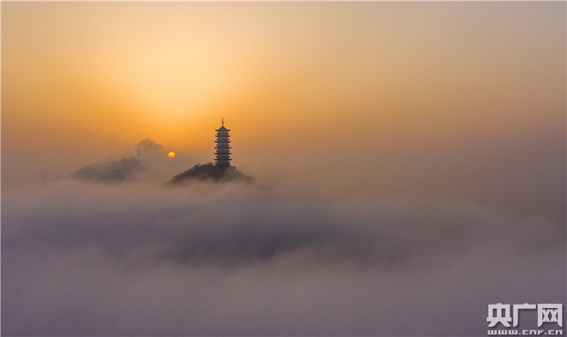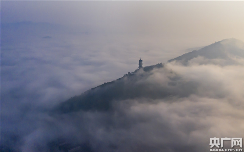 2月22日,江西省九江市都昌縣出現(xiàn)大霧天氣,樓宇、山巒、寶塔在霧中若隱若現(xiàn),宛如仙境。
