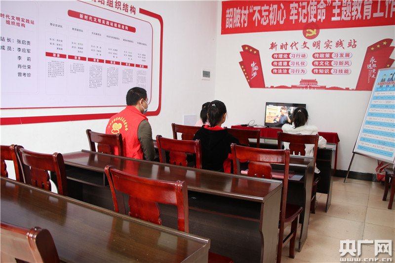 走進(jìn)韶陂村“四點(diǎn)半課堂”,6、7名小學(xué)生有的在上網(wǎng)課,有的在看書(shū)寫(xiě)作業(yè),志愿者在一旁,及時(shí)為有需要的學(xué)生提供輔導(dǎo)!拔蚁矚g在這里寫(xiě)作業(yè),碰到不會(huì)做的題有叔叔阿姨教,寫(xiě)完作業(yè),還可以看自己喜歡的課外書(shū)!鄙刳樾W(xué)四(1)班的張佳璐高興地說(shuō)道。
