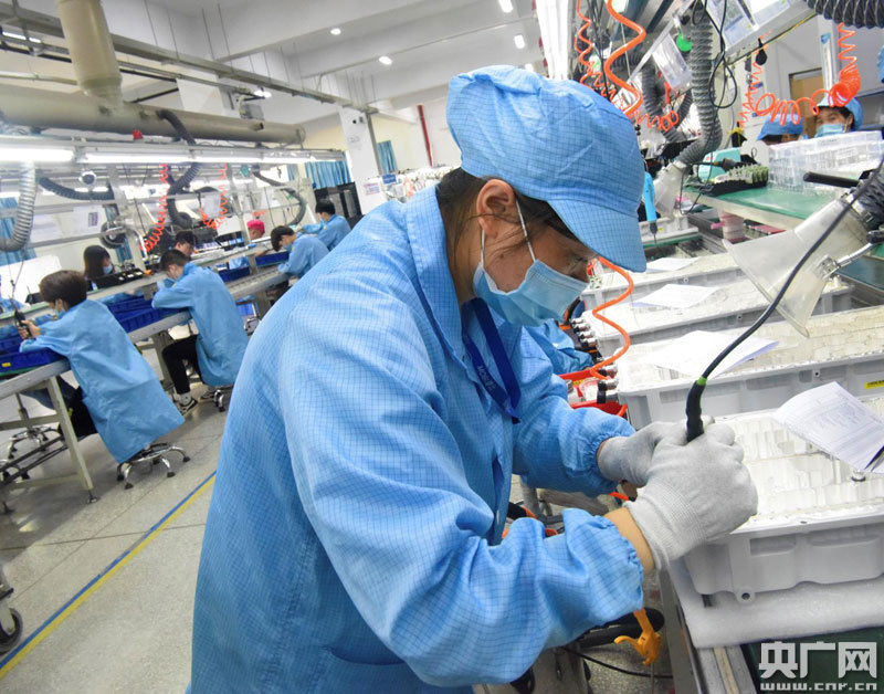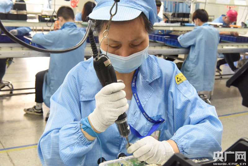 5月26日,江西省吉安吉州區(qū)長塘鎮(zhèn)東家村建檔立卡貧困戶羅會敏正在摩比通訊技術(shù)(吉安)有限公司5G生產(chǎn)車間忙碌著。