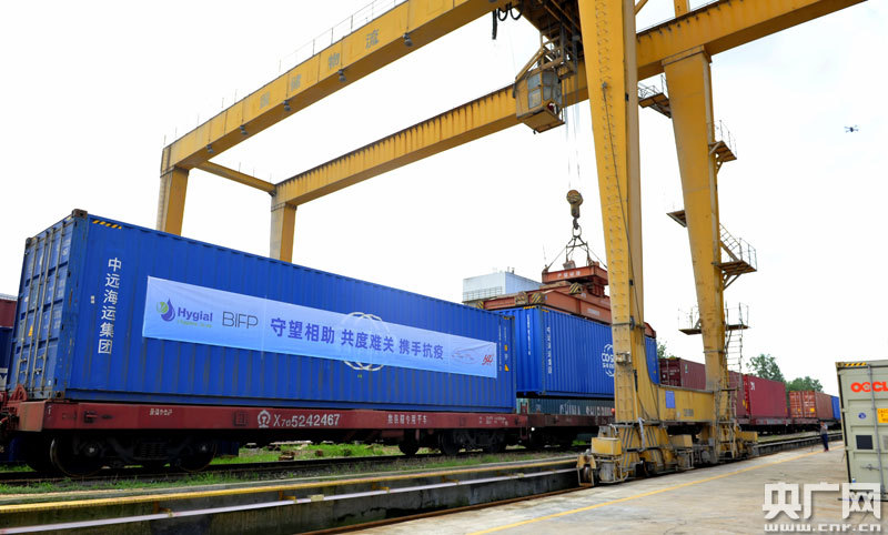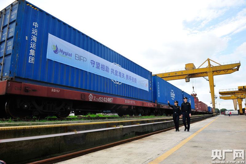 央廣網(wǎng)南昌6月4日消息(記者王一凡 通訊員李慳 高林福)6月4日,一趟滿載著“江西制造”防疫物資的專列由南昌向塘國際陸港駛向法國巴黎,這是國家實施“一帶一路”倡議以來,首列從中國發(fā)往法國巴黎的防疫物資專列。該趟專列將在未來3周內(nèi)穿越7個國家/地區(qū),行駛近14,000公里,專列載運了2000萬個口罩,4500萬副手套,130萬只水溶袋,以及免觸碰消毒液機等產(chǎn)品,總價值達1000萬歐元,此次南昌中歐班列的開行為打通國際產(chǎn)業(yè)鏈供應(yīng)鏈,助力周邊地區(qū)外貿(mào)企業(yè)復(fù)工復(fù)產(chǎn)、支持國際防疫合作等方面奉獻了“江西力量”。