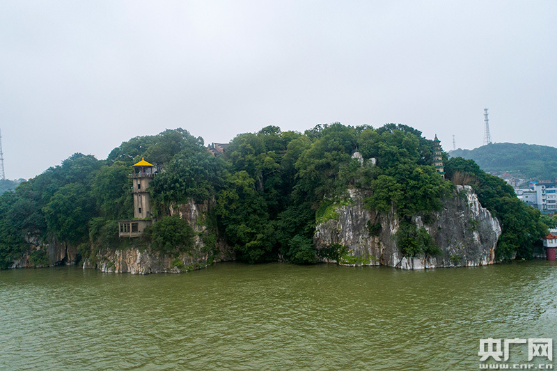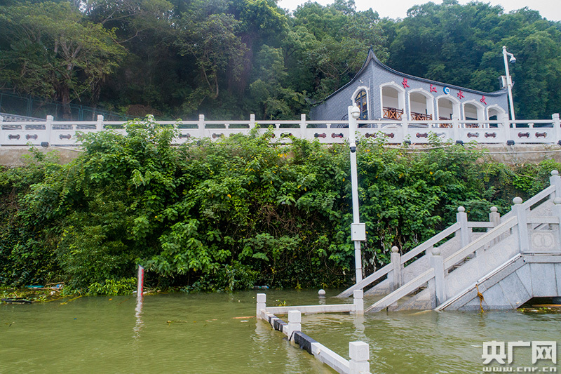 7月16日,鄱陽(yáng)湖口,石鐘山下的洞穴被洪水完全淹沒(méi)(央廣網(wǎng)發(fā) 通訊員李學(xué)華 攝)