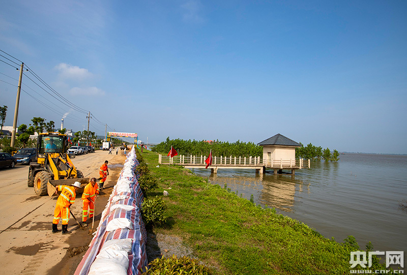7月15日,長(zhǎng)江干堤湖口砂洲堤段,環(huán)衛(wèi)工人正在清理路面的泥沙(央廣網(wǎng)發(fā) 通訊員李學(xué)華 攝)