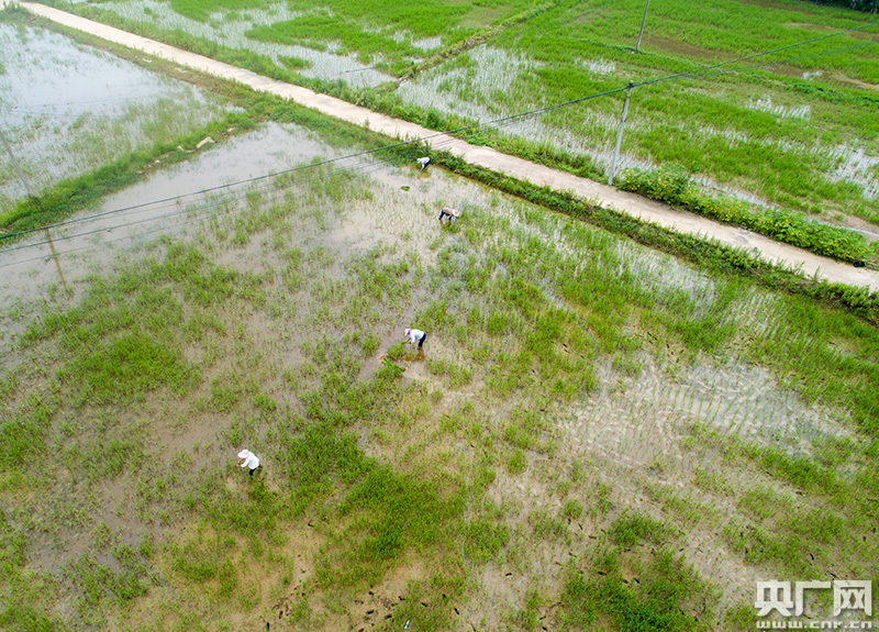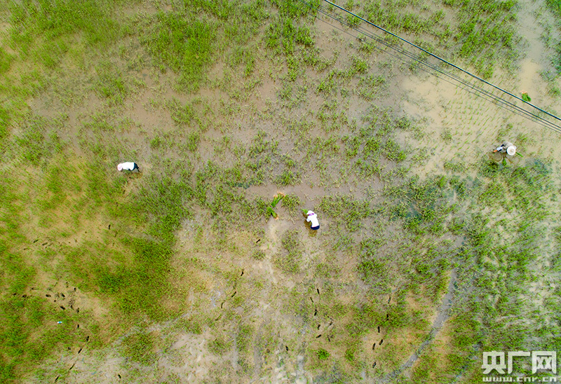 7月15日,湖口縣城山鎮(zhèn),農(nóng)民正在補(bǔ)植水毀秧苗(央廣網(wǎng)發(fā) 通訊員李學(xué)華 攝)
