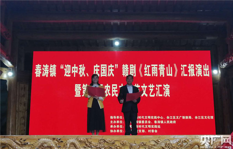 春濤鎮(zhèn)塢橋村新時(shí)代文明實(shí)踐廣場(chǎng)上,“慶雙節(jié)”文藝匯演熱辣開(kāi)演。(央廣網(wǎng)發(fā) 通訊員艾春華/攝)