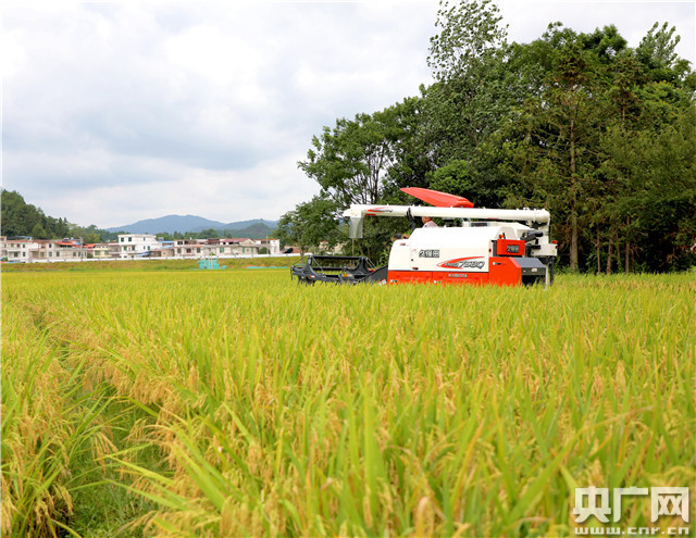 農(nóng)戶正在收割富硒水稻(央廣網(wǎng)發(fā) 通訊員尹其奇攝)
