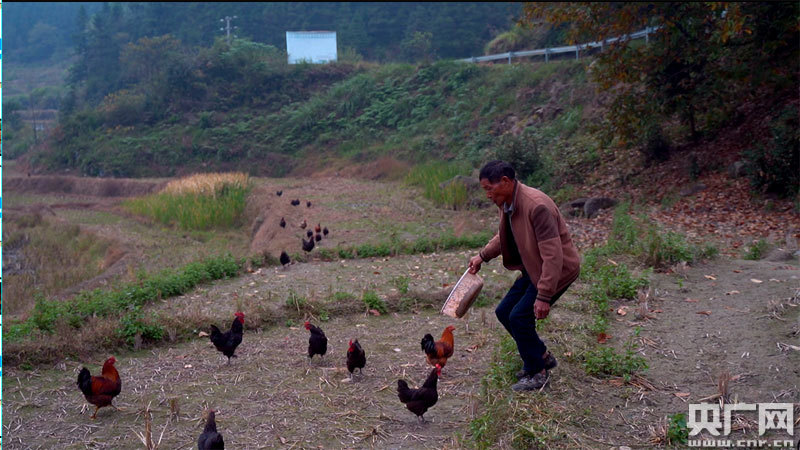 老韓在喂雞(央廣網(wǎng)發(fā) 通訊員提供)