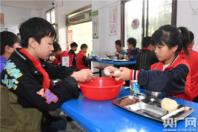 仙女湖區(qū)觀巢學校的學生在“小荷之家”享用愛心早餐 凌厚祥攝